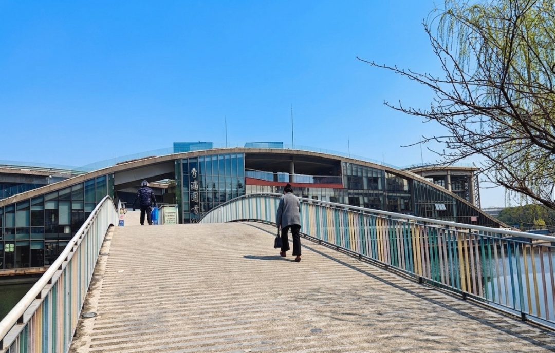 青浦图书馆外的阶梯桥,是读者们走进图书馆的必经之路。这里视野开阔,曾被《铠甲勇士》的镜头相中,成为剧中的取景地。荧幕里的急促脚步,早已化作现实中的悠闲步履。但无论是对书本还是英雄的热爱,都在这片土地上,从未褪色。