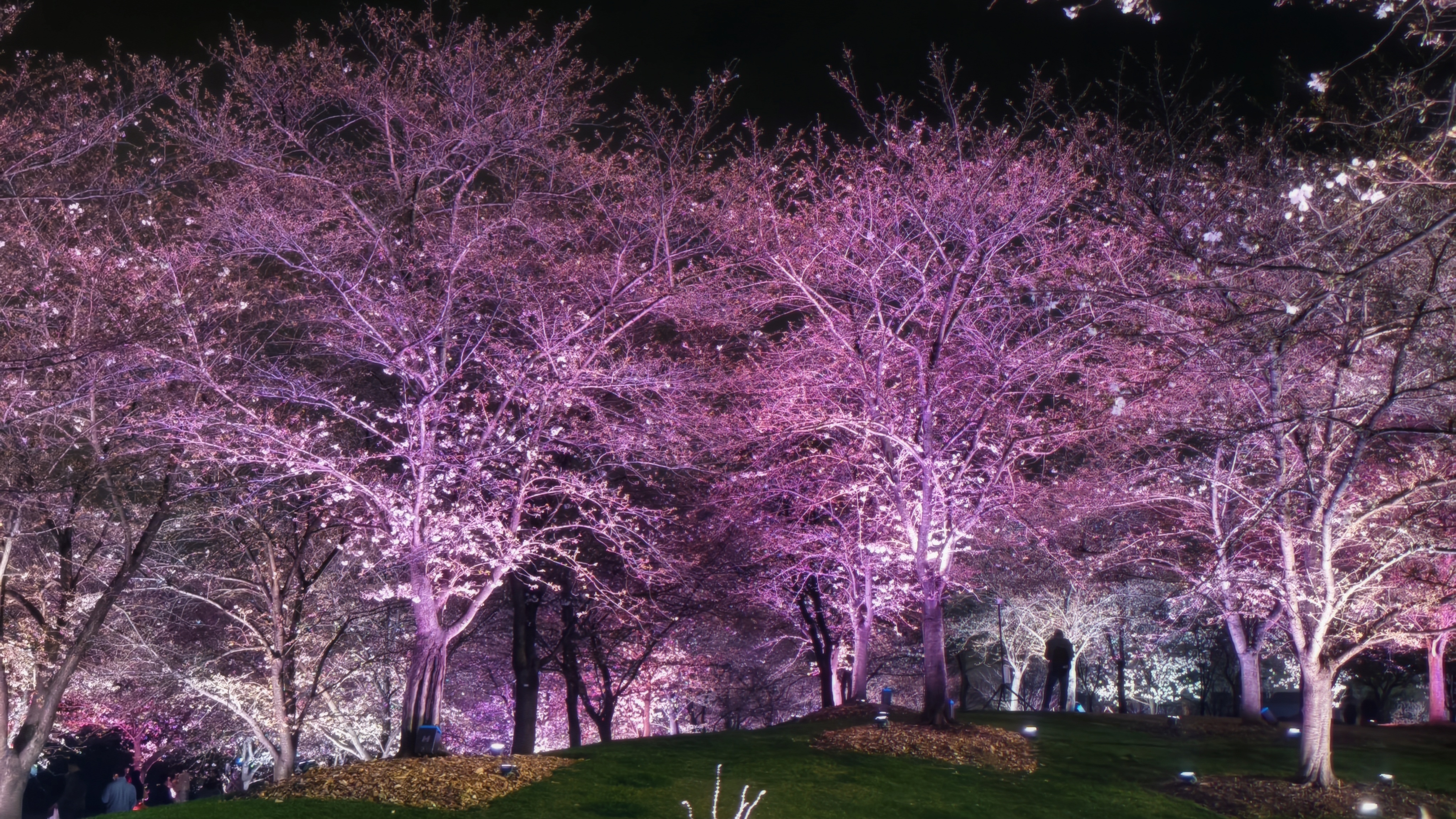 “我是第一次来辰山看樱花。进来的时候其实天色已经有点暗了,本来还有点担心。到这边一看,没想到晚上的樱花真的很美,粉粉的,特别出片!”游客何女士也忍不住感慨。