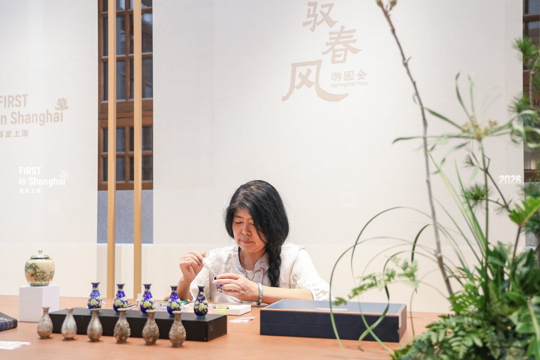 “驭春风・游园会”现场创新打造“走马入市、青云游、踏花影、鎏光台、春日宴、沪上庭院”六大沉浸式空间,呈现一场移步易景的东方游园,并设置非遗工匠坊与春风手作工坊,老凤祥、熊氏珐琅等非遗技艺现场展演。