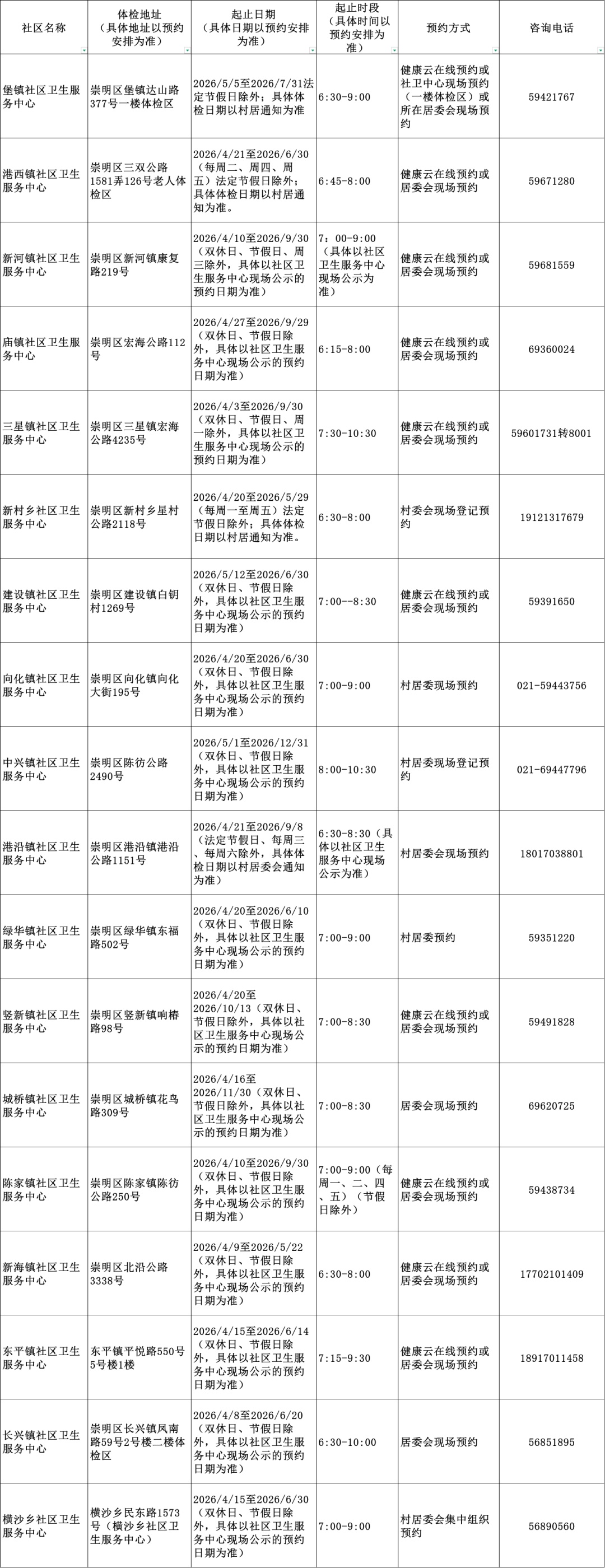 市卫生健康委介绍,按照国家基本公共卫生服务项目要求,为全方位提升老年人群的健康水平,更有效地做好老年人健康管理,全市246家社区卫生服务中心为辖区内65岁及以上常住居民,每年提供1次免费的健康管理服务。文末附崇明区老年人健康体检信息一览表!