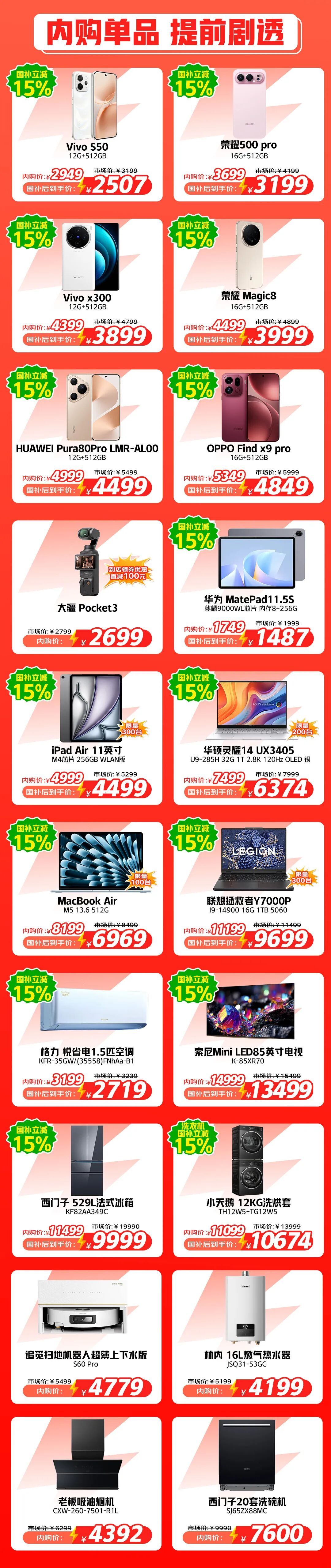 据了解,目前已公布部分内购会参与产品的价格,涵盖手机、笔记本、手持运动相机等3C产品,冰箱、电视、空调、热水器、油烟机、洗碗机、扫地机器人等家电。