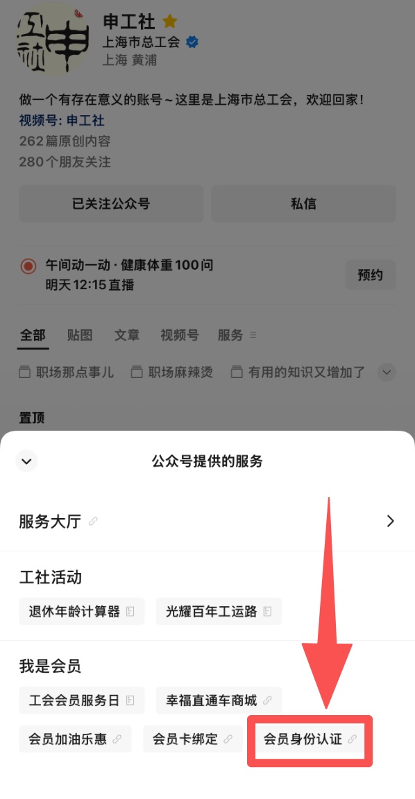 关注申工社微信公众号,并进入“我是会员-会员身份认证”查看你的上海市总工会会员证。