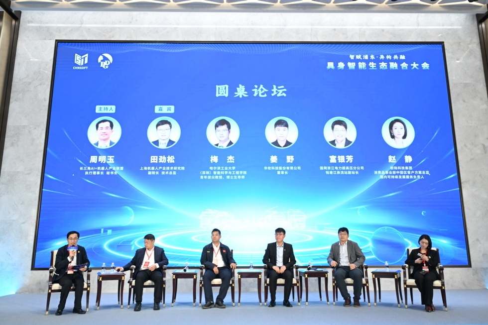 大会还设置了主题圆桌论坛,以 “华软异构协同智能无人系统生态助力区域经济发展” 为主题,嘉宾们围绕具身智能技术创新、产业生态建设、浦东未来产业发展机遇等核心议题展开深度对话,结合国家 “十五五” 规划为浦东智能产业发展建言献策。