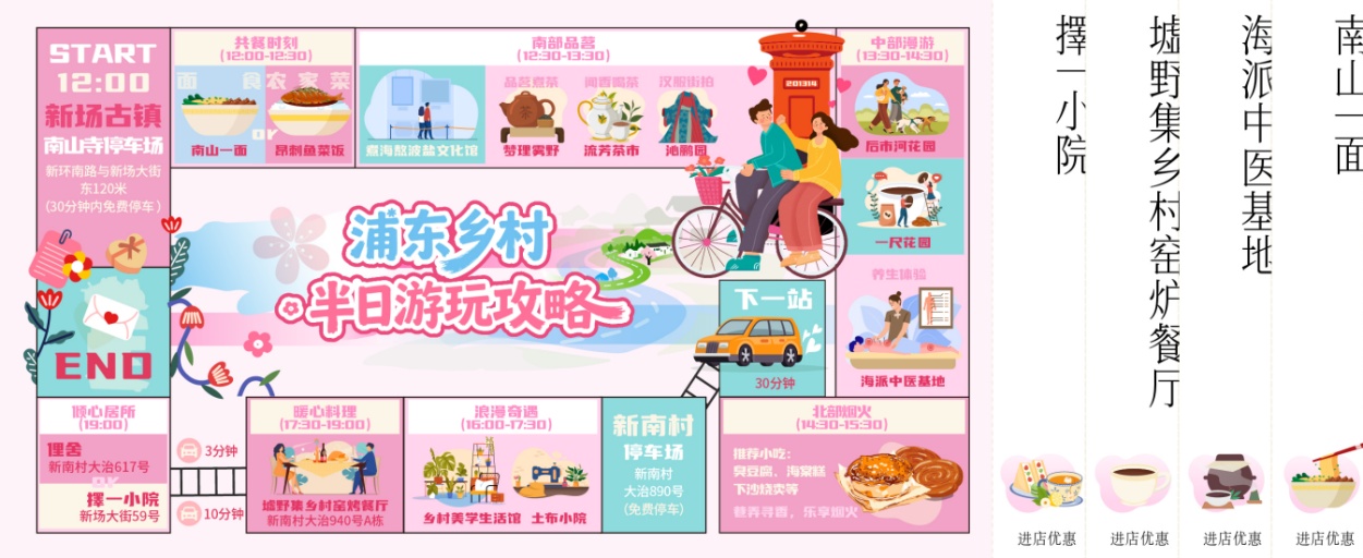 该特辑以“浦东乡村半日游玩攻略”为主线,串联起浦东乡村的100个点位,大多是青年主创的青春小店,涵盖了青年群体在吃、玩、买、住等多维度的消费需求。“最具有吸引力的是,我们还附赠了对应点位的优惠联票,共有40项权益,全部使用的话可以折抵千元。”团区委相关负责人介绍说,目前首批500本正陆续通过上海桃花节期间的各类青年活动发放,为广袤乡村的千亩桃林、油菜花海引流赋能。
