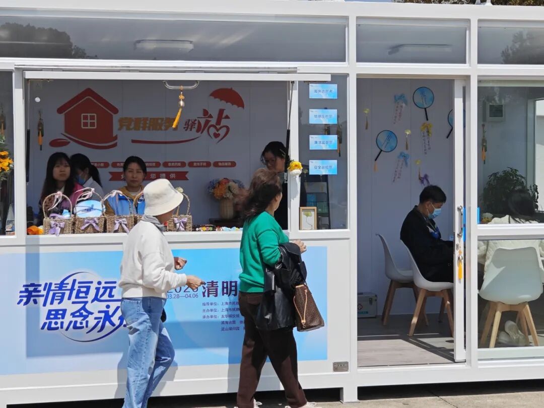 除了提供歇脚的场地和基础便民设施,党群服务驿站更是解决群众祭扫难题的“中枢”。针对特殊群体和突发情况,园区将服务阵地前移,做到有求必应。“徐泾西园于2024年正式启用服务驿站,主要面向祭扫客户提供全方位的现场支持。客户在祭扫过程中如需咨询或求助,例如申请陪同服务、报修墓位设施、反映绿化枯损等,均可在此获得一站式响应与处理。”徐泾西园党支部书记、总经理罗小红介绍道。