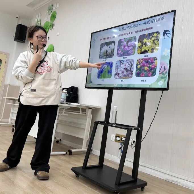 活动伊始,老师通过生动有趣的讲解,带领孩子们认识春分“昼夜均分、万物复苏”的节气特点,用儿歌、互动问答的形式,让萌娃们在轻松氛围里感知春日生机。屏幕上嫩绿的新芽、绽放的花朵,让孩子们直观领略到自然的变化,也激发了他们探索春日的好奇心。