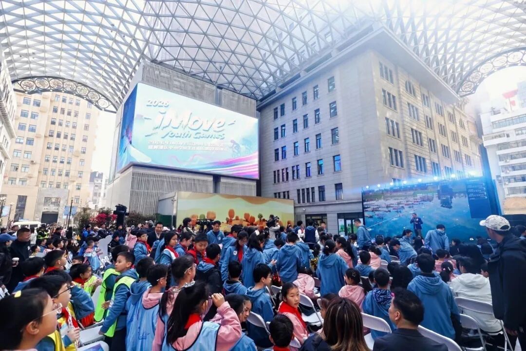 3月28日,2026年iMove元动少年会启动仪式暨黄浦区中小学班主任队伍建设月闭幕式在南京路步行街外滩中央商场中庭举行。市教委副主任王浩、黄浦区副区长王槐与数百名师生共同为赛事启幕。虚拟赛艇、虚拟自行车、AI体能挑战赛、AI跳绳等项目同步开赛,200米混合双人双桨、3.1公里虚拟自行车五校团体赛隔空竞速。大屏上虚拟赛道瞬息变幻、选手位次实时刷新,科技与体育碰撞出的火花,让过往市民游客纷纷驻足喝彩。