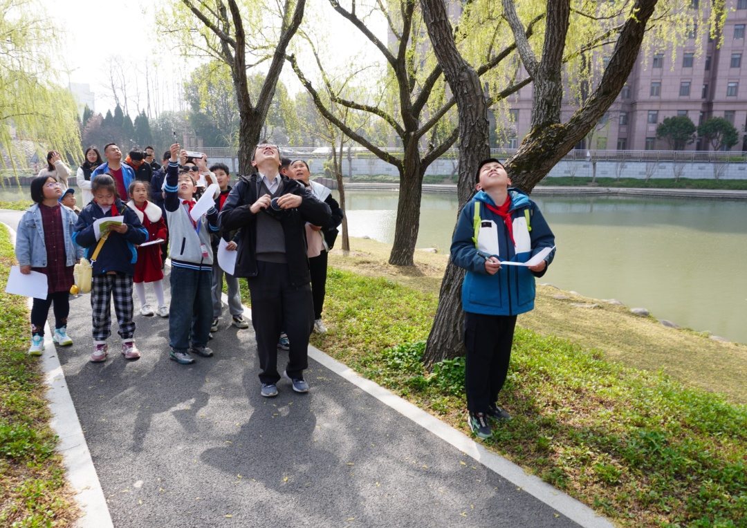 龙泉港公园、前京大道绿地里,一群小小观鸟者们轻装上阵,手里攥着纸笔,跟着“绿行者”志愿者的脚步徒步前行。春日的绿地间、河畔的树林里,乌鸫、斑鸠、柳莺等鸟类不时掠过,孩子们屏住呼吸,认真记录着这些小精灵的颜色、体型、飞行方式等,仔细聆听它们的鸣叫声。