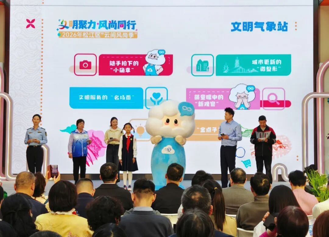 “文明气象站 市民随手拍”活动今年焕新归来。该活动旨在记录、传播松江的城市文明温暖瞬间。来自松江各领域的“文明气象员”代表登上舞台,用照片、视频、小故事分享身边的文明新风、暖心善举与城市美好。