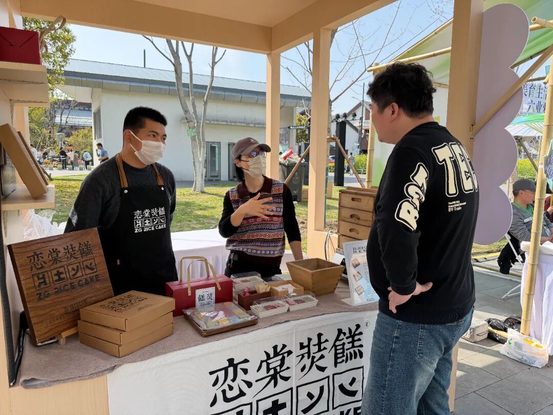 在市集旁,本土文艺团体“放歌天团”带来的春日欢唱派对正火热上演。《青春的放歌》《春日》……一首首耳熟能详的歌曲,让商圈瞬间变成了露天音乐厅。歌手张申骋在台上唱得热血,台下市民也跟着旋律轻轻哼唱,文化市井气在这里完美融合。