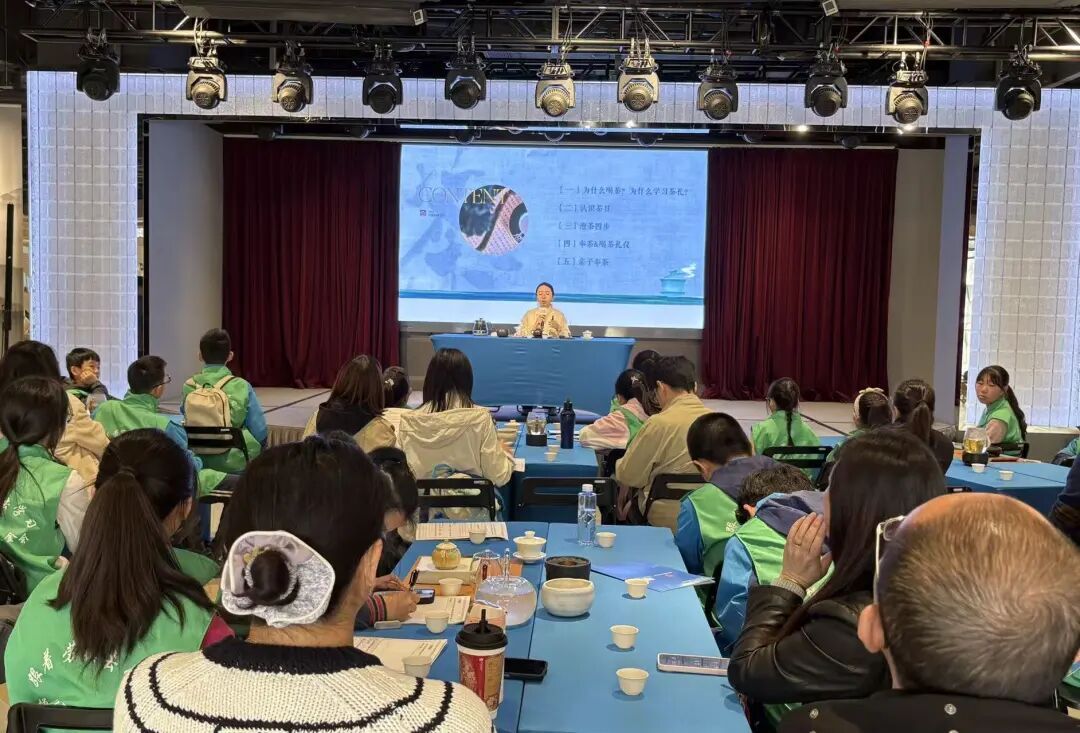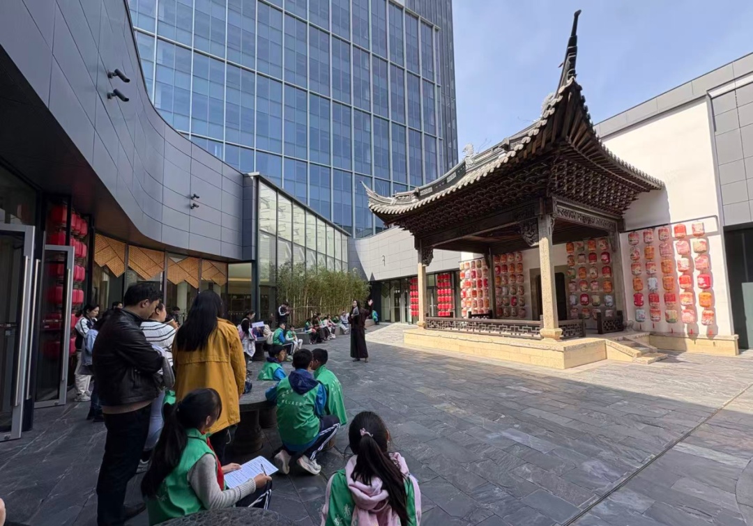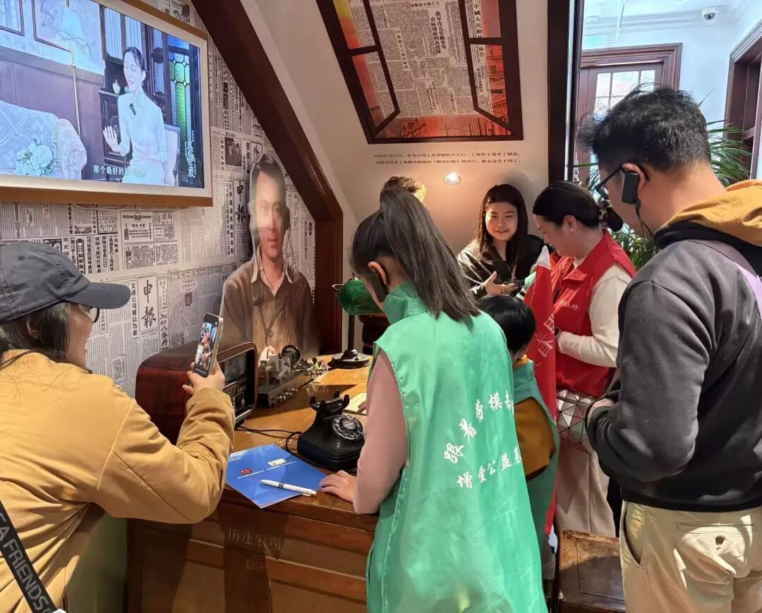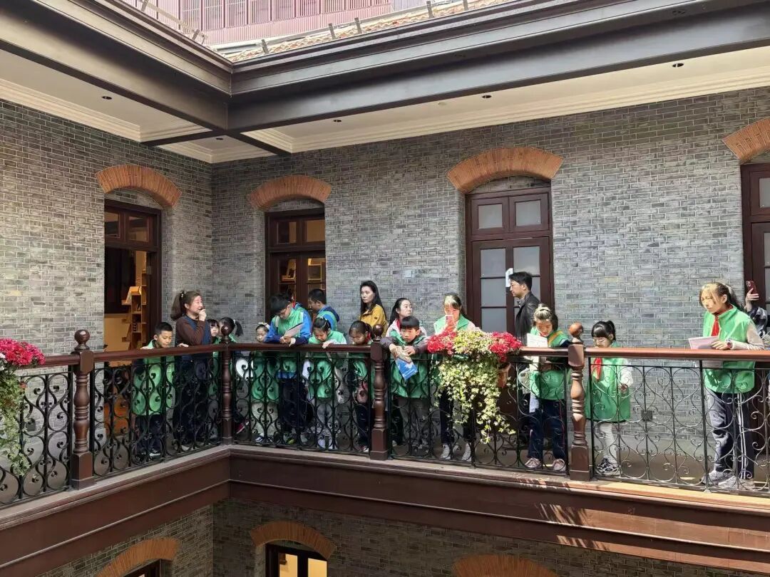 活动中,亲子家庭还探访江南古戏台,感受非遗文化与海派建筑魅力。走进漱石茶社,体验茶艺与奉茶礼仪,孩子们以敬茶践行孝亲敬长美德。家长与孩子分享城市记忆、交流家风感悟,混龄伙伴分工协作完成研学任务,在温馨互动中拉近亲子距离、增进同伴情谊,让红色文化、海派文化、优良家风可触可感、入脑入心。