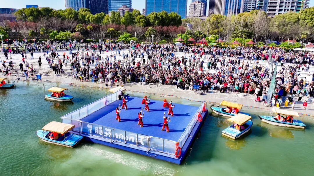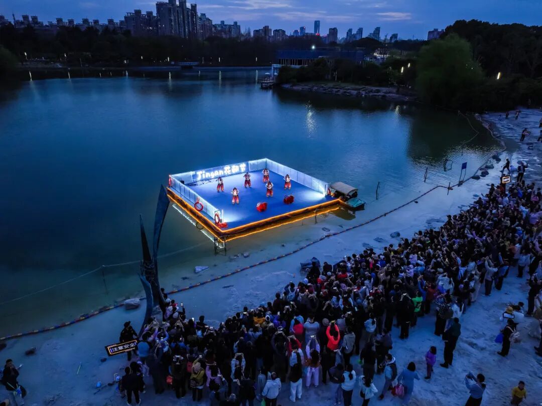 水上舞台机器人表演:科技感十足的机器人动感互动、踏春起舞,解锁科技游园新乐趣,吸引全年龄段游客驻足打卡。