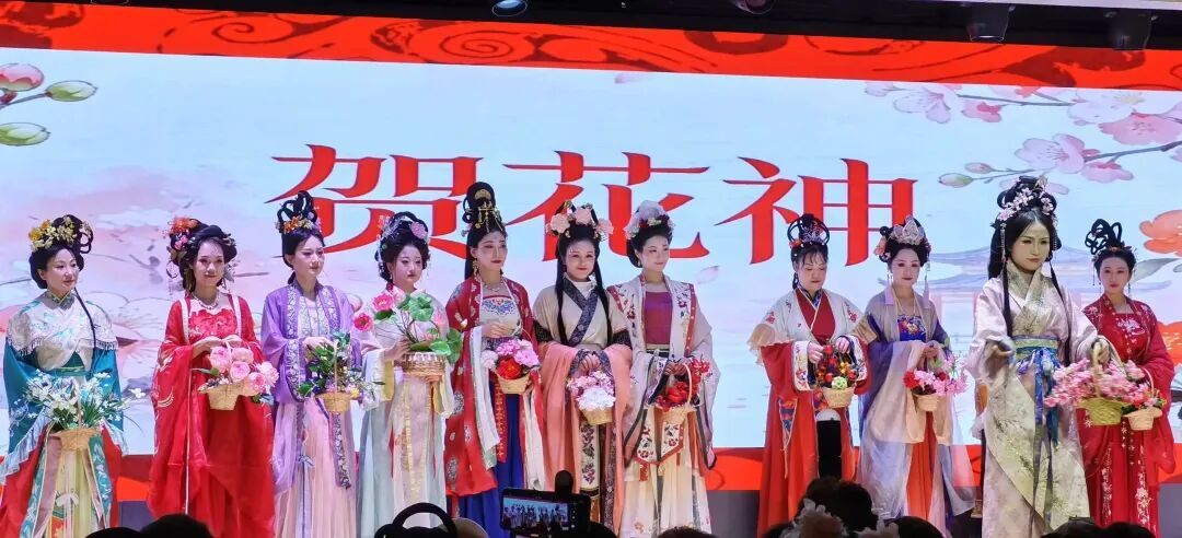 汉舞妆造彩绘巡演《贺花神》唯美启幕,身着精美汉服的表演者演绎十二花神的温婉灵动,妆造体验、礼仪互动让居民沉浸式感受国风之美。
