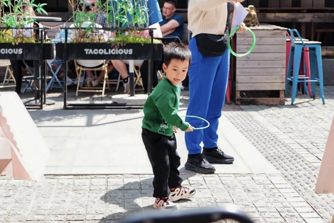 亲子运动嘉年华热闹开启,投射推拉间满是欢声笑语,协作互动中凝聚社区温情,北广场上处处洋溢着活力与欢乐。