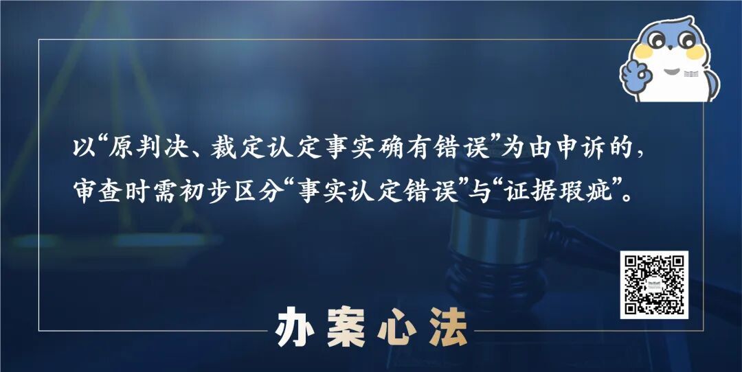 审查时需初步区分“事实认定错误”与“证据瑕疵”,对明显属于轻微证据瑕疵,不影响主要事实认定的,立案审查人员应尽力做好申诉人的沟通罢诉工作,不简单作为立案复查事由;核心事实认定错误、证据不足的,应依法纳入立案复查范围。