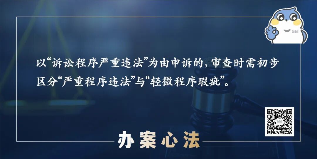 审查时需初步区分“严重程序违法”与“轻微程序瑕疵”,对明显属于轻微程序瑕疵,未影响案件公正审理的,应尽力释法说理做好申诉人的沟通工作,不简单作为立案复查事由。