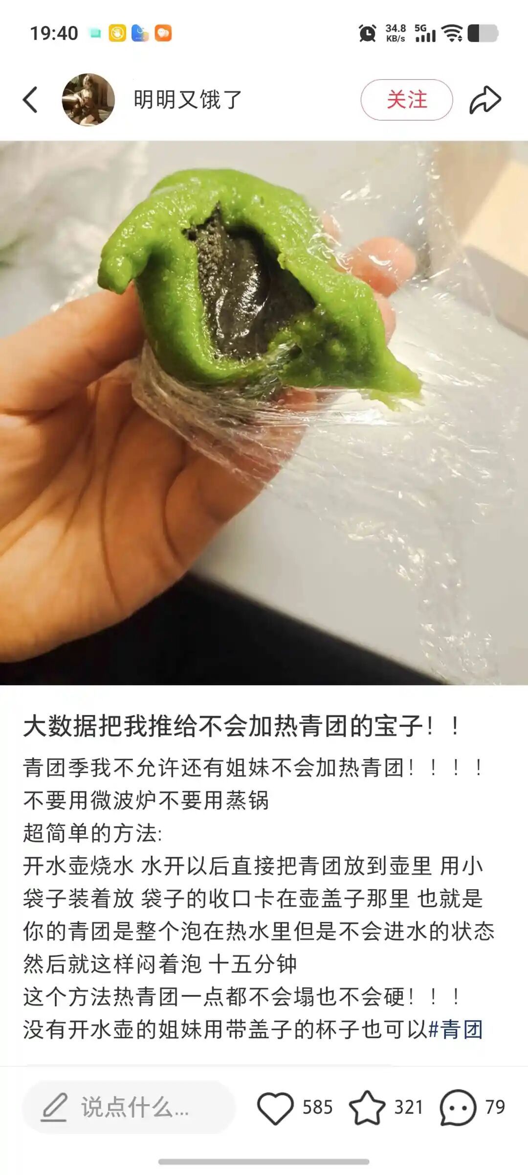 这是最省时间的方法,家里有微波炉就能操作,但重点是“控温控时”,不然青团很容易“塌房”!