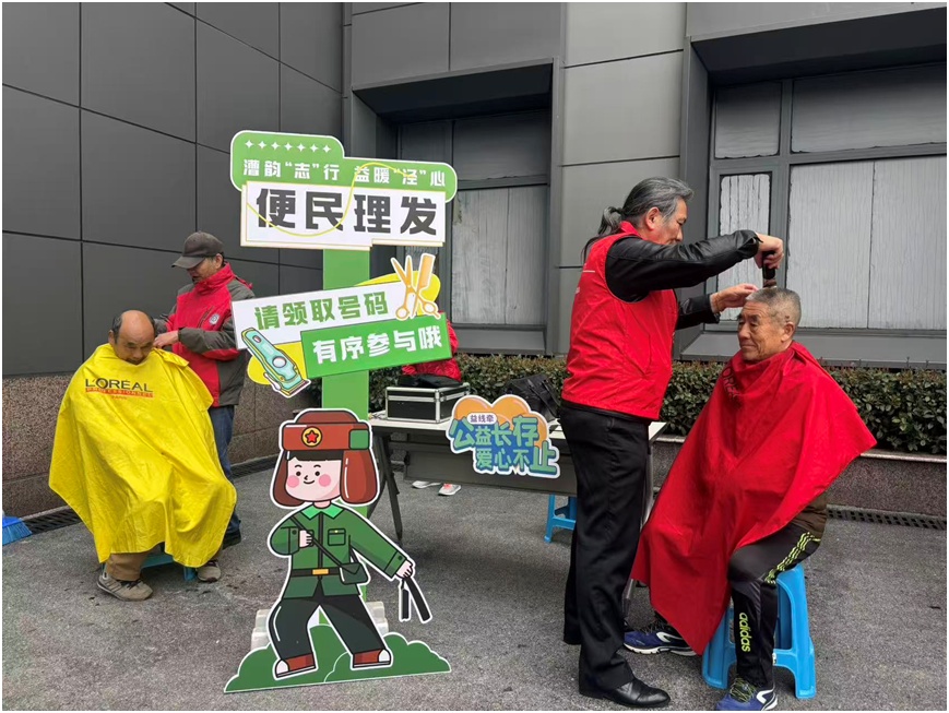 “益线牵”志愿者在漕河泾街道雷锋主题集市提供理发服务