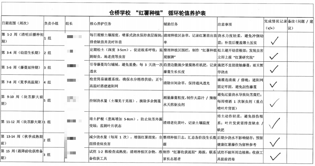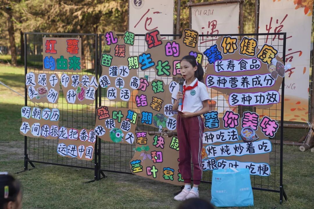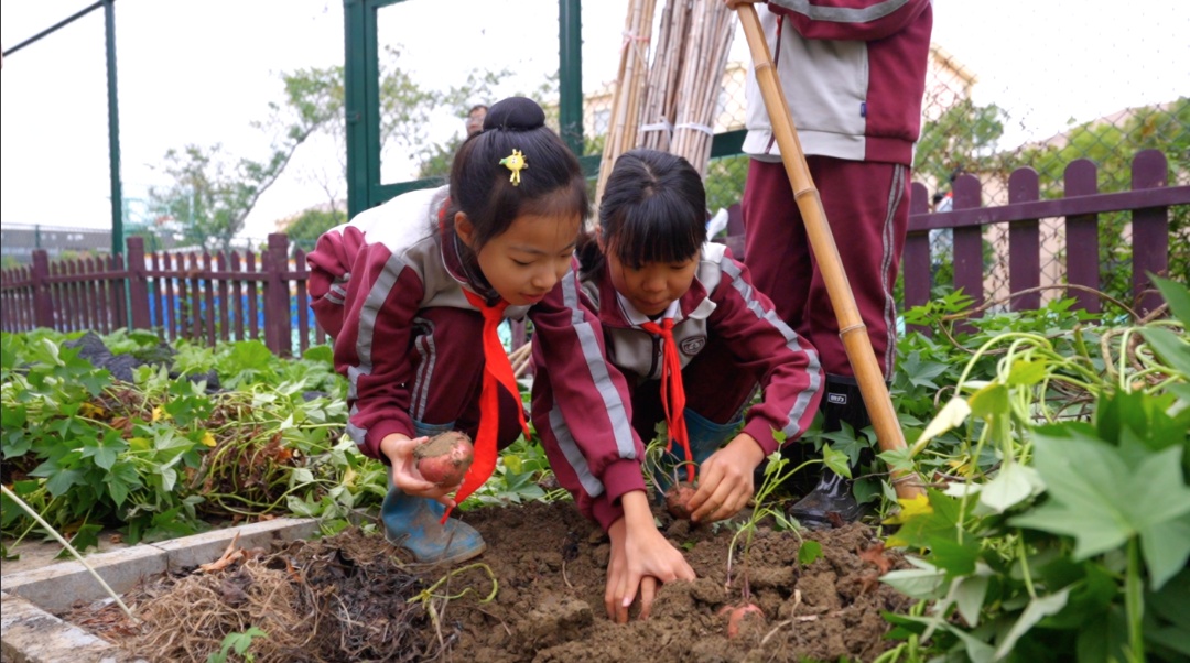 “原来烤红薯要文火慢烤才会外焦里糯!”“不用农药也能种出香甜红薯。”“立冬晒薯干是祖辈传下来的智慧。”…… 在仓桥学校的校园里,一场由学生主导的红薯食育之旅,让“不识农事、不知食源”的孩子们,在泥土与烟火气中收获了别样的成长。 作为江南农业重镇,松江种植红薯已有三百年历史,沙质土壤孕育的红薯香甜软糯,还衍生出晒薯干、酿薯酒等传统工艺。为了让学生重建与食物源头的连接,仓桥学校依托 “仓汇农场”,启动了这场完全由学生主导的食育实践。 项目之初,学生们通过班级讨论、投票,结合“易种植、用途广、有松江特色”的标准,自主选定红薯作为种植作物。他们查阅松江地方志、走访社区老人,了解本地红薯品种特性,在决策中完成了一次生动的本土农业文化启蒙。随后,学生团队制定种植计划:清明前后播种贴合“春播秋收”传统,设计轮值养护表保障田间管理,还组建“红薯研究院”,专门探究红薯的营养价值与传统加工工艺,从一开始就树立了强烈的主人翁意识。