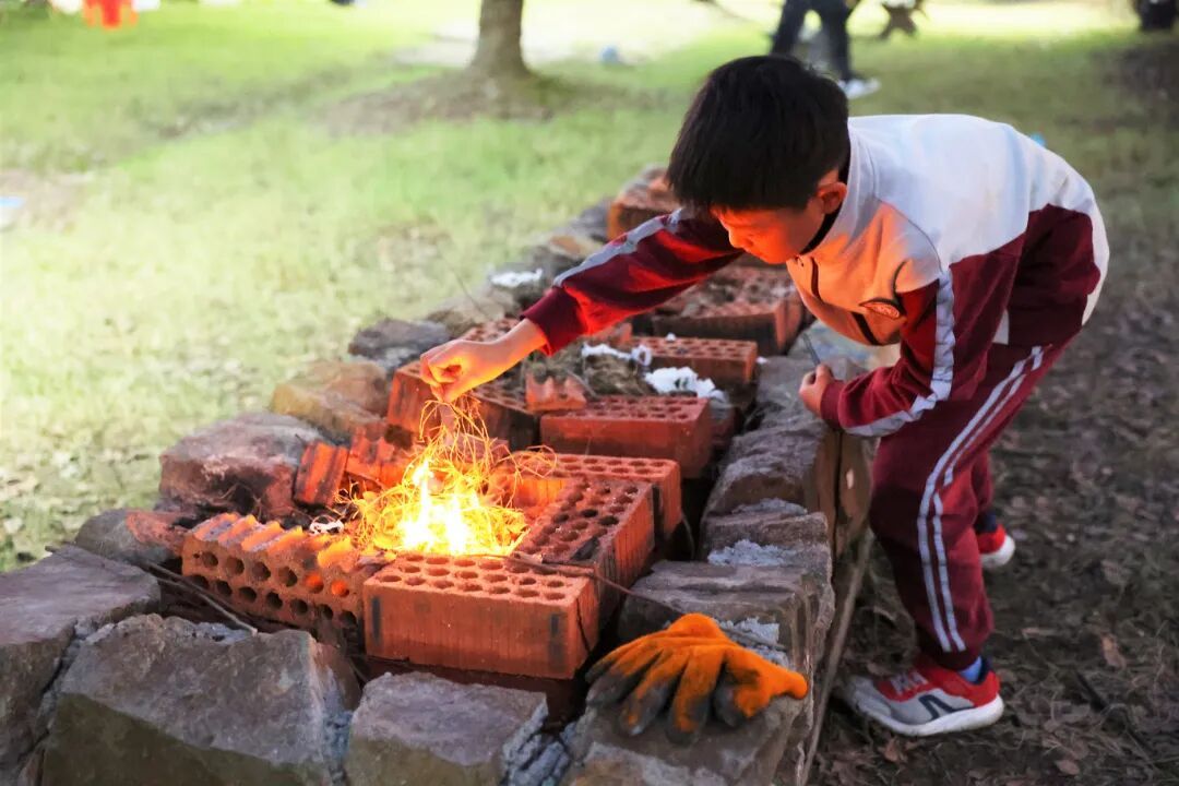 种植过程中,孩子们遇到了不少挑战。红薯苗遭虫害时,大家拒绝农药,分组研究生态防治方法,最终用大蒜汁、辣椒水制成天然驱虫剂;干旱季节,他们动手设计简易滴灌系统,让作物顺利生长。“原来不用农药也能种出好红薯,这让我对‘干净’的食物有了全新认识。” 一位学生在日记中写下了自己的感悟,在劳动实践中读懂了“顺应自然、尊重生命”的饮食哲学。 霜降时节,田间的红薯迎来丰收。在老师和社区老农的指导下,孩子们亲手挖出饱满的红薯,感受着秋收的喜悦,也记下了“霜降吃薯,暖身抗寒”的松江食俗,理解了节气与饮食健康的关联。 如何让亲手培育的红薯发挥最大价值?一场热闹的“红薯美食创意会”上,烤红薯、红薯粥、红薯饼等方案纷纷涌现,其中“土灶烤红薯”呼声最高。孩子们参照松江农村“田头土灶烤薯”的传统,用砖块搭建简易土灶,在反复试验中掌握了“文火慢烤”的技巧。当金黄的红薯带着焦香出炉,咬上一口软糯香甜,大家不仅尝到了劳动成果的美味,更读懂了食物从原材料到佳肴的转化密码。 立冬节气来临,“红薯美食周” 将活动推向高潮。孩子们跟着传统经验学习“立冬晒薯,风干成干,久存不坏”,在食堂尝试多种烹饪方法,还在家与父母共同研发红薯食谱。红薯干、红薯泥、红薯糕等美食相继诞生,孩子们在动手实践中,体验到食物保存与加工的智慧,深刻理解了“物尽其用”的传统饮食理念。