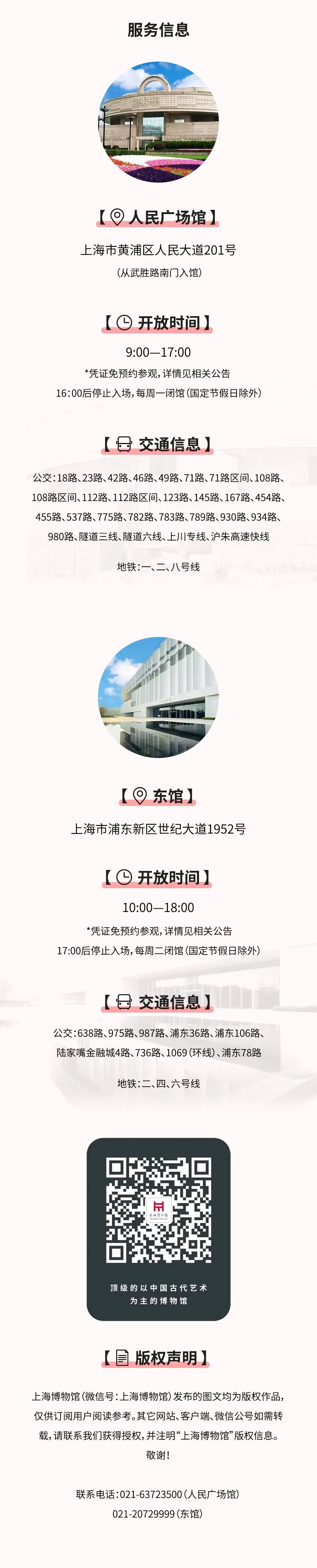 观众可提前14日(含当日)扫描以下二维码,或通过上海博物馆微信公众号“GO上博-参观预约”栏点击进入小程序预约。更多详情请在预约时,查看预约入口内的“参观须知”。