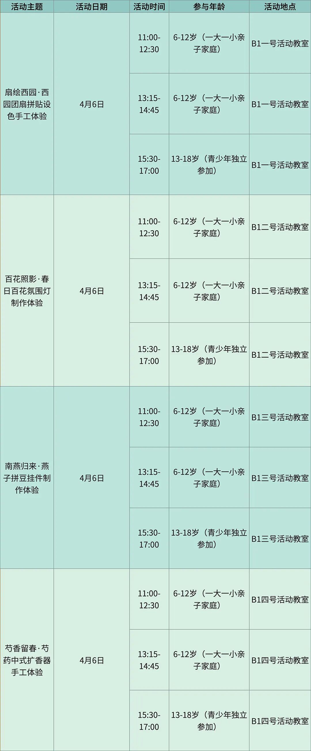 3.部分手工坊使用的工具包括剪刀、镊子等,亲子家庭场次中,请家长全程陪同学生参与,并在活动过程中注意安全。