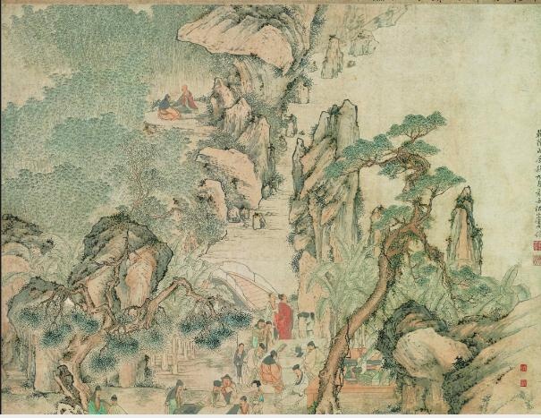清明正是春意渐盛、草木萌发的时节,柳色新、花木盛,最适宜游赏园林。古人过清明,本来就讲究出游赏景、亲近自然。让我们来到“西园”,从画中的石桥、古柳、湖石、书案、花木与雅集人物等元素出发,通过纹样拼贴、局部设色、题签点缀等步骤,将长卷中的诗意景致转化为可随身珍藏的扇面作品,让一柄团扇成为属于自己的“西园小景”。
