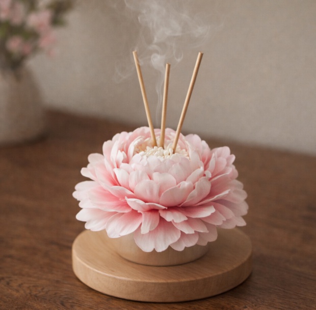 活动选取上博馆藏文物近代张大千画作《芍药图轴》中的芍药花形象,利用超轻黏土打造一件具有中式美学韵味的扩香器。