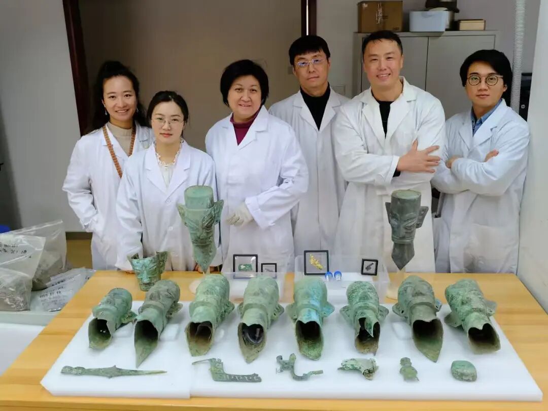 在“中华文明探源工程”国家重点考古项目“三星堆出土青铜文物保护修复项目”中,面对设备缺乏、环境艰苦的情况,凭借丰富的专业经验和训练有素的修复技术,成功攻克文物结构脆弱、表面硬结物堆积、内部包裹物复杂等技术难点。特别是对“金面具笄发青铜人头像”、“青铜立兽器盖”等数件病害严重器物的修复,取得了理想效果,获验收专家们的一致好评,成为展陈的亮点,充分彰显了专业价值。
