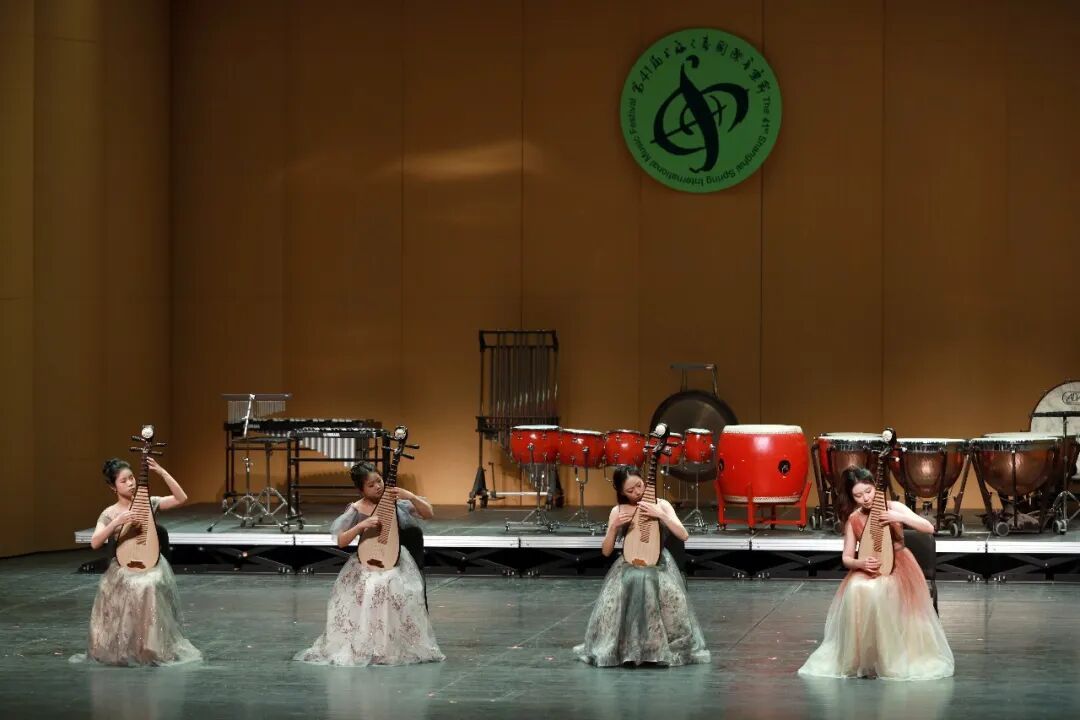 上海市韶琴二胡乐团演奏的《黑神话・悟空》,通过韶琴五个声部分层对话,还原东方神话的磅礴气势与戏剧张力;浙江音乐学院李跞琵琶室内乐团带来琵琶四重奏《夏》,以新疆音乐元素勾勒夏日盛景,热情而富有动感。
