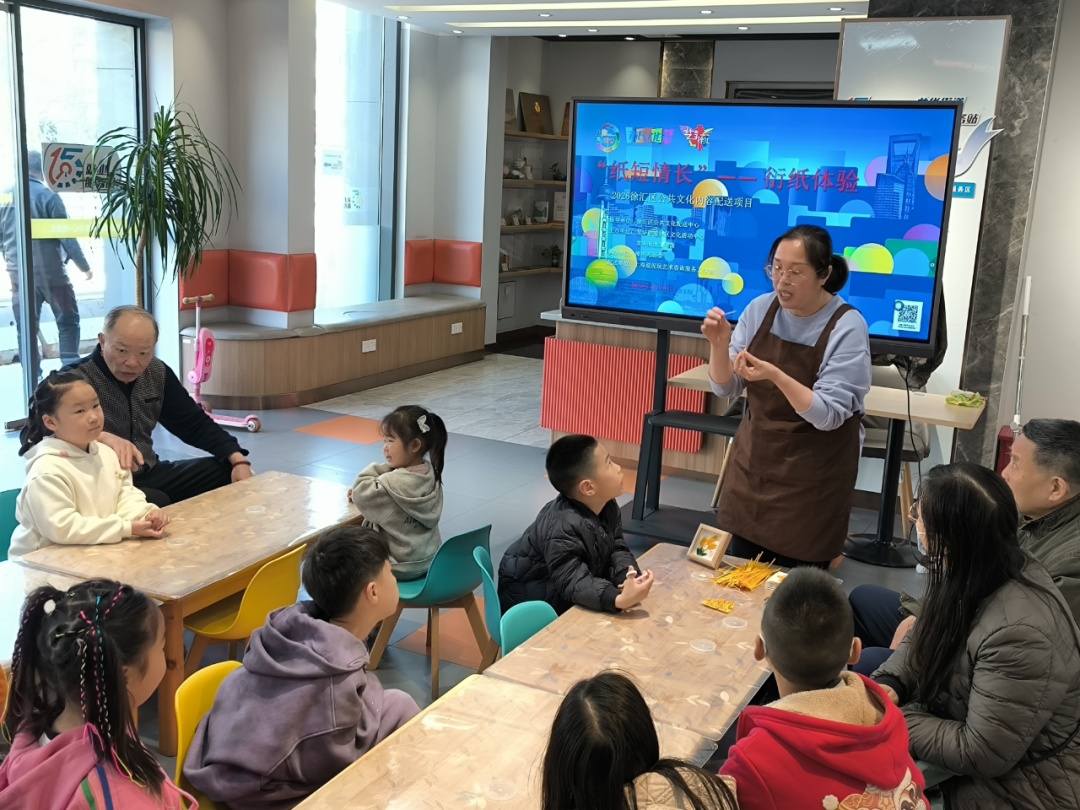 活动当天,数十组少儿家庭来到龙南党群服务中心一楼儿友好空间,体验非遗衍纸技艺。现场,老师首先演示了卷、捏、拼、贴等衍纸制作技巧,随后孩子们在指导下,共同完成了一幅寓意“丰收和希望”的立体衍纸作品。