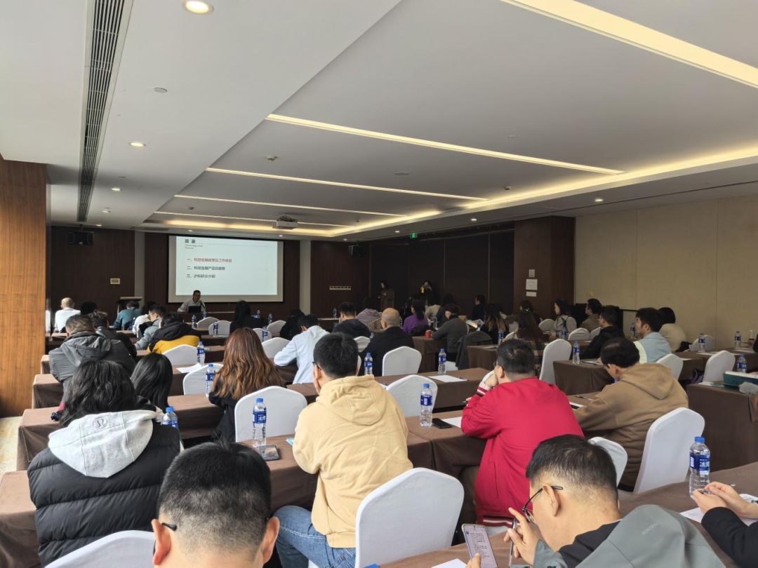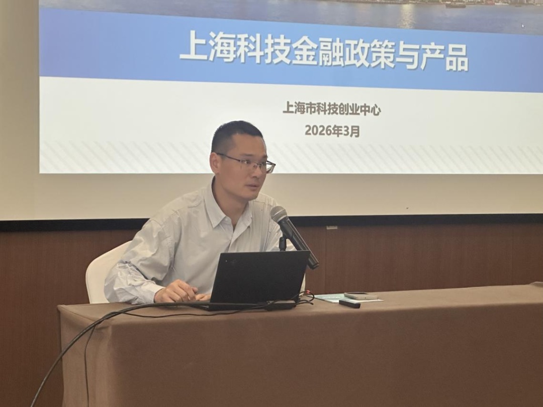 活动现场,上海市科技创业中心的杨超老师详细解读了科技金融政策产品和服务体系。其中,科技履约贷系列面向成长期科技企业,通过“政府+银行+保险”风险共担模式提供融资支持;科创助力贷主要支持初创期科技企业,无需担保、用款灵活;生物医药临床、产品责任保险能够有效降低生物医药企业研发产生的风险,推动创新药械尽快进入市场。此外,杨老师着重介绍了“沪科积分”这一用于评价企业技术创新、成果转化和产业化水平的数字化工具和指导科技金融应用的重要抓手。同时,他还阐述了依托“沪科积分”所推出的相关科技金融政策及产品。