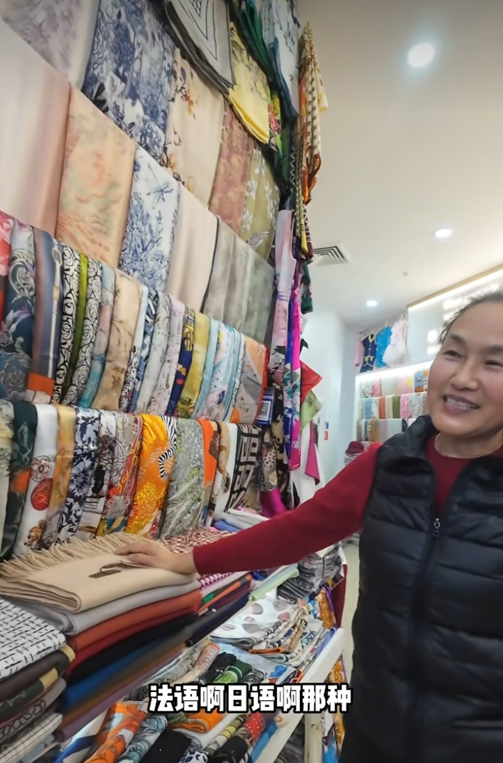 小店里,一排排丝巾垂挂,真丝的、羊绒的,一看就是好货。老外来了,店主陈菊兰用熟练的英语招呼:“Do you need some scarves?”