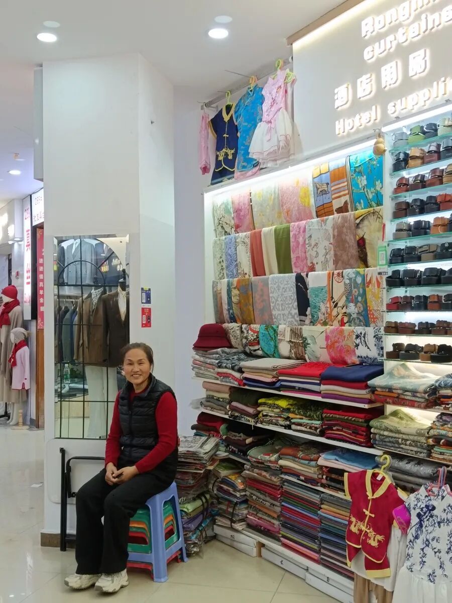 做了这么多年生意,人脉就像滚雪球,越滚越大。陈菊兰说,以前在南京西路做的时候,“95%都是老外”,回头客很多,有人会专门来找她,把她的丝巾带回去送朋友。如今不少顾客会加她微信,逢年过节互相发一句“Merry Christmas”或“新年快乐”,这些往来,让她觉得有意思。