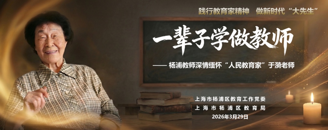 七十余载深耕讲台,于漪老师以“一辈子做教师,一辈子学做教师”的执着信念,生动诠释了人民教育家的初心使命与责任担当。最好的缅怀是传承,最好的纪念是奋斗。杨浦教育人将以于漪老师为榜样,在三尺讲台践行教育家精神,以生命唤醒生命,以初心守护初心,让教育家精神在课堂落地生根、薪火相传,以实干担当书写新时代杨浦教育高质量发展的答卷。