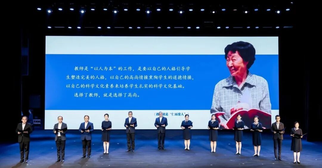 远在西藏和云南的六支杨浦教育支教团队通过视频方式,表达了对于于漪老师的缅怀之情和传承教育家精神扎根当地开展教育帮扶的决心。第二师范学校附属小学教师代表深情朗诵于漪老师经典作品《往事依依》节选,在熟悉的文字中,重温先生教育初心,感悟字里行间的家国情怀与育人温度。打虎山路第一小学以《教育家精神在课堂》为主题,生动演绎青年教师在先生精神指引下深耕课堂、践行使命的故事,展现出教育家精神在当代校园的传承与延续。