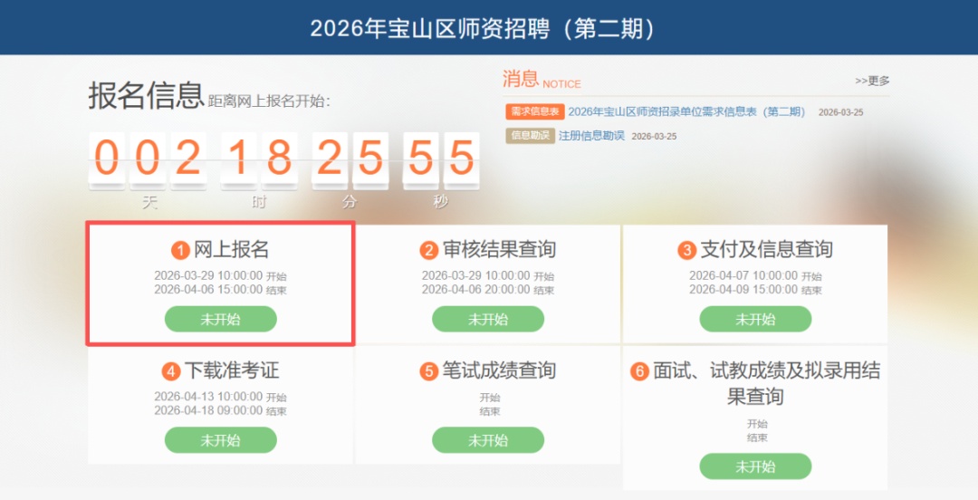 应聘者进行网上注册报名,用人单位实行网上预审并确定应聘初选人员。【网上报名通知另发,请关注“宝山教育信息网—(https://www.bsedu.org.cn/)—专业平台—教师招聘”或“宝山教育公众号”】