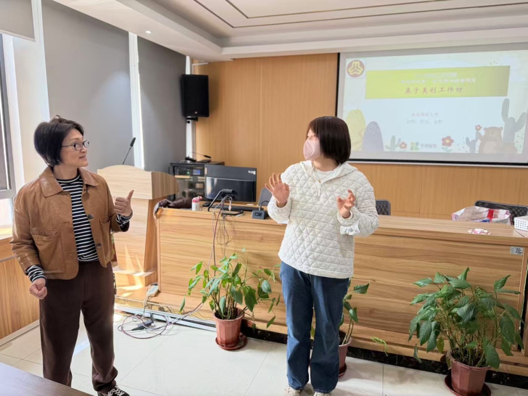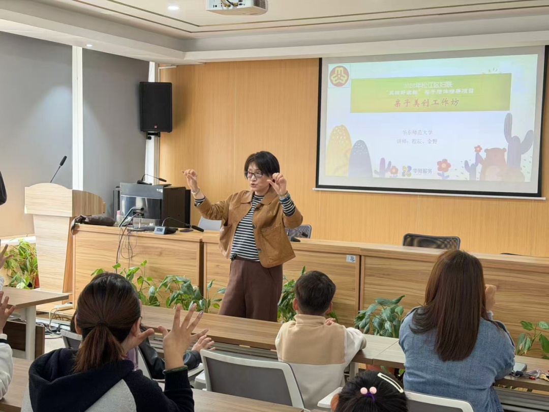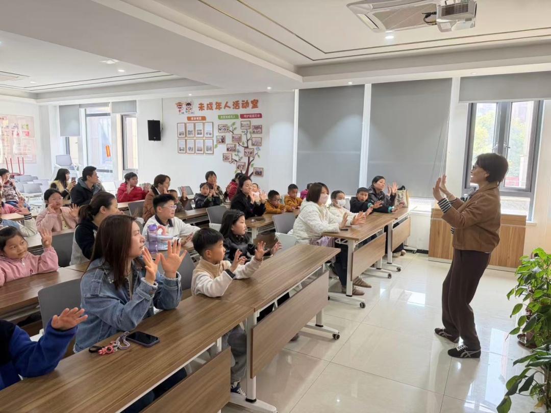 活动伊始,来自华东师范大学的程辰老师带领大家开展趣味十足的手势互动游戏,瞬间活跃现场氛围,轻松拉近家长与孩子的距离。各组家庭紧跟老师节奏,认真模仿、踊跃互动,欢声笑语充盈整个课堂,为后续手工创作营造了轻松愉悦的良好氛围。
