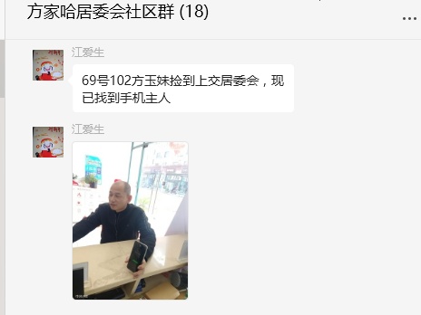 暖心不负有心人,在工作人员的全力宣传和细致排查下,不到两个小时,失主就匆匆赶到社区党群服务站。工作人员核对了失主的身份信息,并让失主通过指纹解锁确认,确认无误后,将手机交还给了失主。失主连连向工作人员表示感谢,随后表示想向减到手机的阿姨当面表达谢意。
