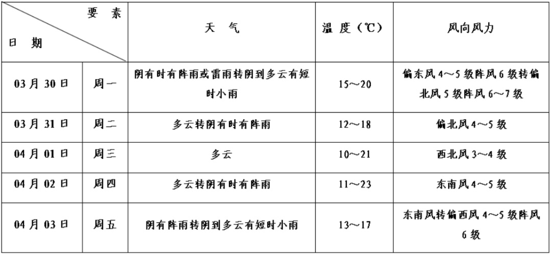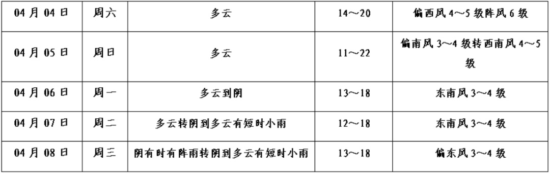 偏北风4—5级阵风6级