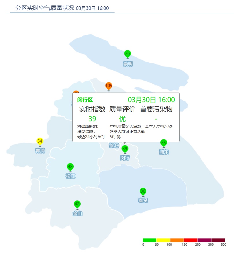 闵行区AQI为39,优。