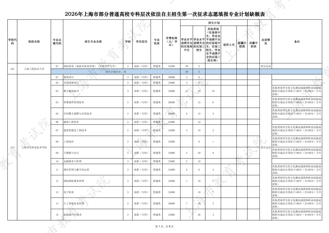 市教育考试院介绍,2026年上海市部分普通高校专科层次依法自主招生经志愿投档录取后,尚有部分招生院校未完成招生计划,考生可于今日起登录各报考院校官网查看录取结果。
