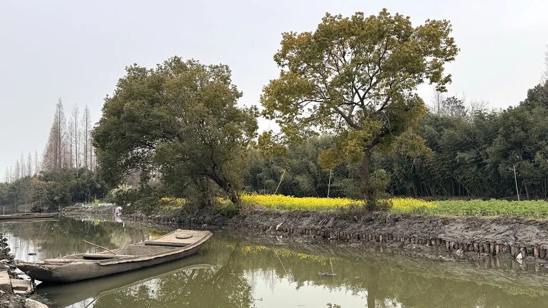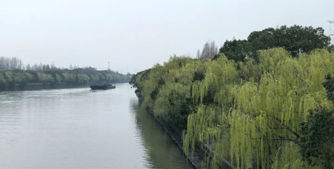 纵横交错的棋盘水网,春分时节岸堤柳树泛绿,碧水潺潺,沿袭横塘纵浦的历史水系格局未改,尽显沪派江南水乡的温婉灵动,既是灌溉脉络,更是乡愁纽带。