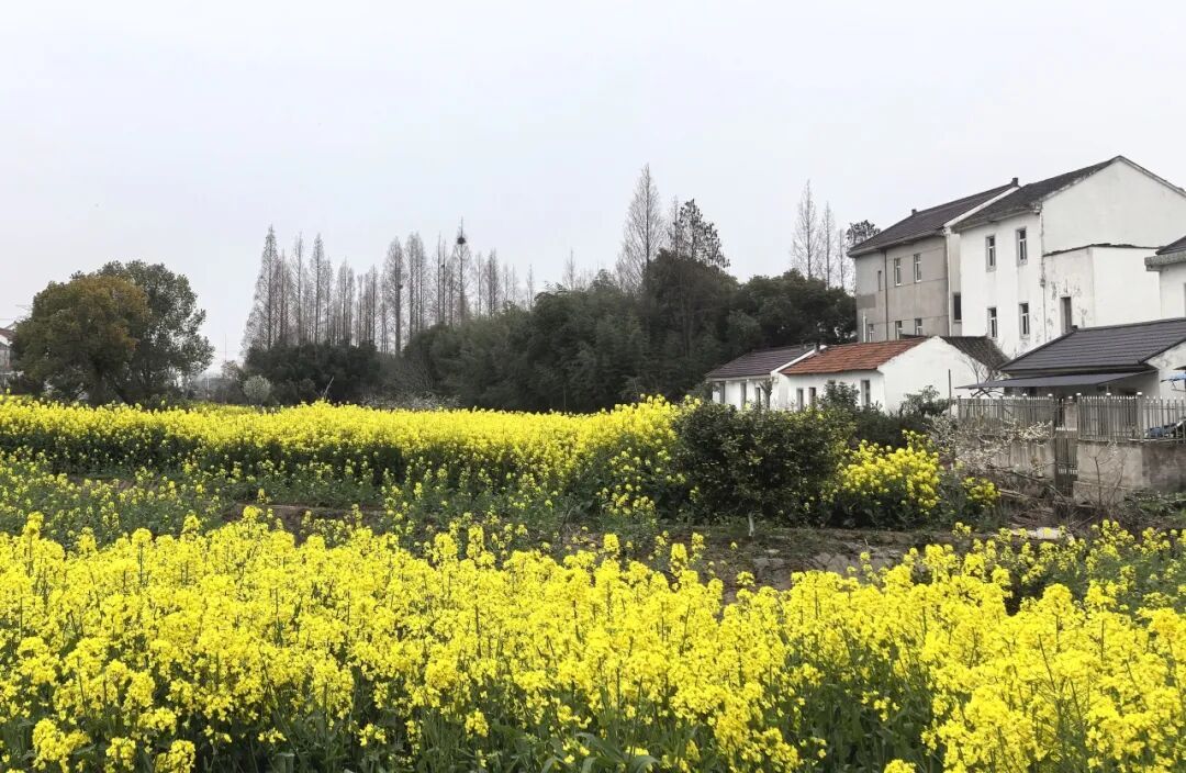 春分时节油菜花连片盛放,金绿相间、肌理清晰,原真田园风貌一览无余,是沪派江南农耕文明的春日缩影。