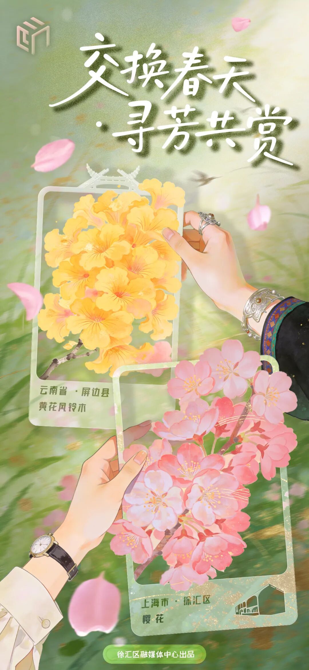 春天究竟有多少种模样?是沪上都市里的精致绿意,还是彩云之南的烂漫风情?3月31日,徐汇区融媒体中心推出《交换春天·寻芳共赏》直播特别报道。我们将带您一次解锁上海徐汇与云南屏边的双重春色,更有独具特色的艺术展览为您呈现,诚意满满,惊喜不断!