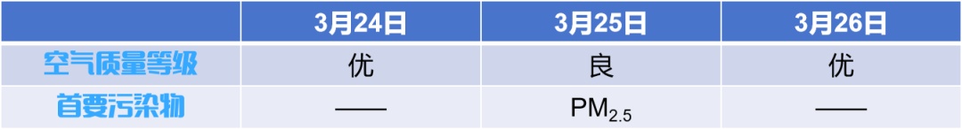 3月20日至3月26日徐汇区空气质量等级及主要污染物: