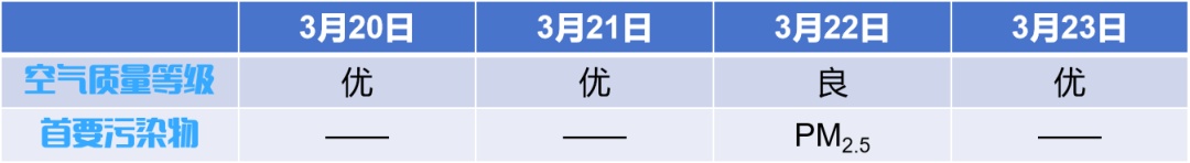 2026年3月20日—3月26日,徐汇区大气环境质量报告如下所示: