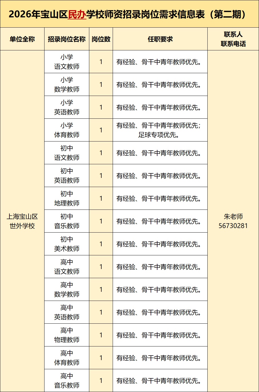 宝山,位于上海东北部,地处长江入海口,具有“百年教育”文化底蕴。胡适、朱自清、郁达夫、陶行知等众多教育家、学者曾在这里办学、讲课,为宝山留下了珍贵的教育思想和文化财富。近年来,随着区域人口增长,教育规模持续扩大,亟需招录、引进和培养一支“高素质专业化创新型”的教师队伍,为加快建设“一地三区”,努力打造教育强区,提供优秀师资保障。 现根据宝山区学校师资配备及人员编制实际,按照公开、平等、竞争、择优的原则,面向社会招聘优秀教育人才。