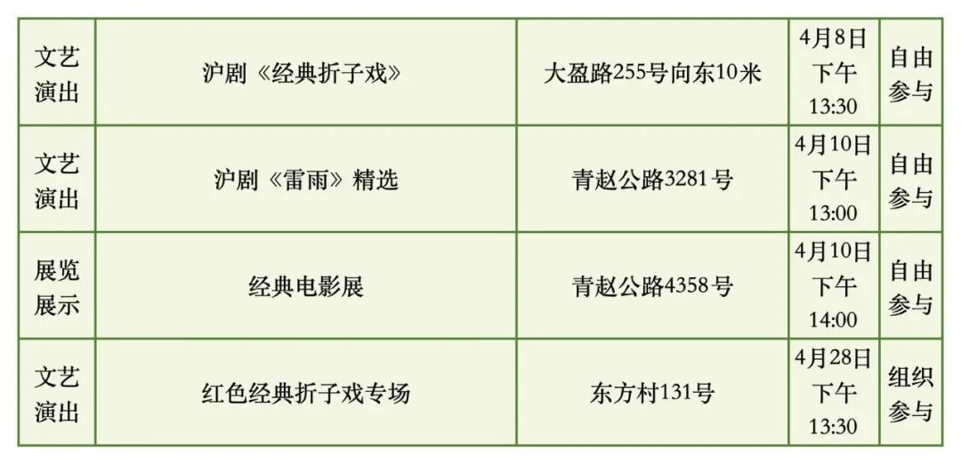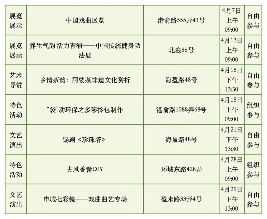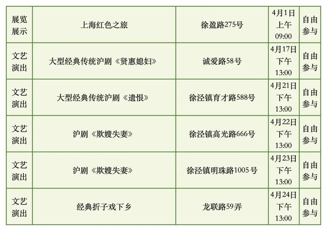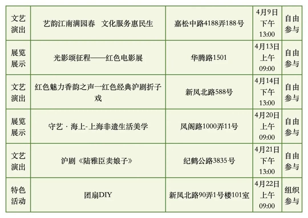 具体时间地点以各街镇文化活动中心发布信息为准
