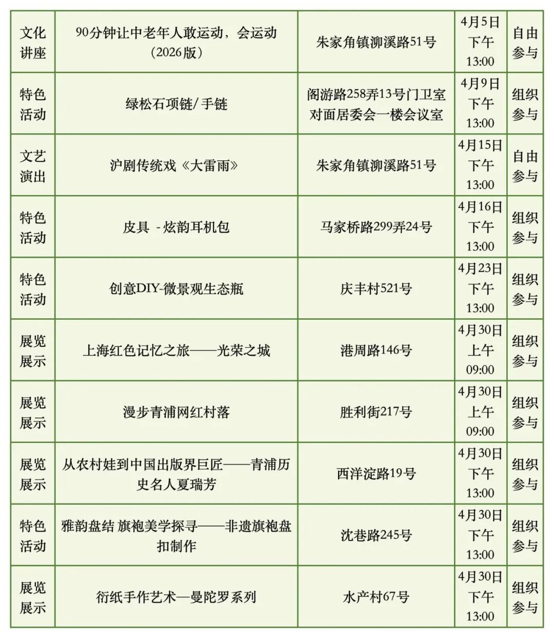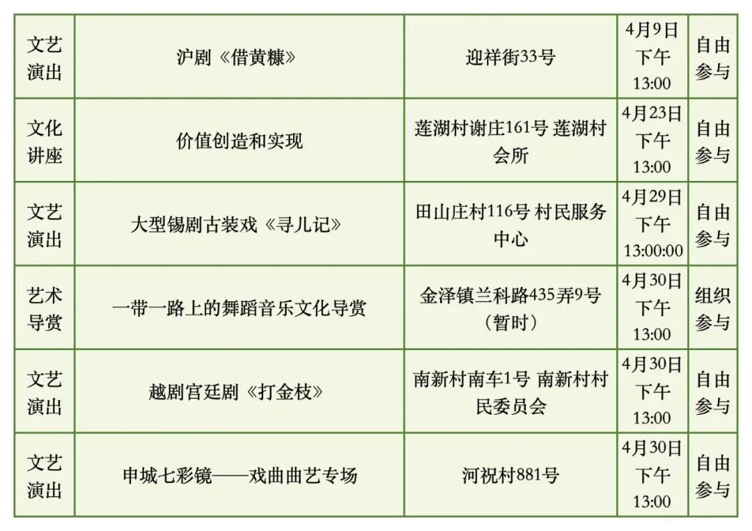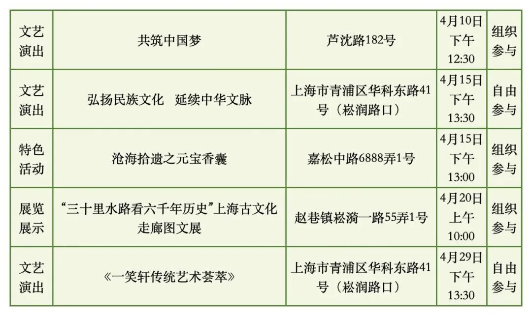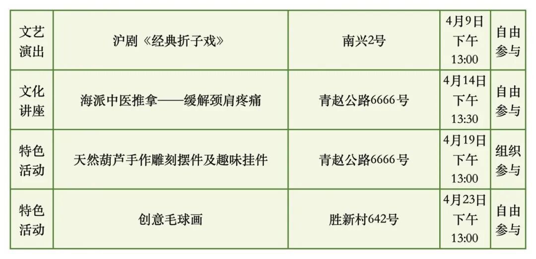 具体时间地点以各街镇文化活动中心发布信息为准